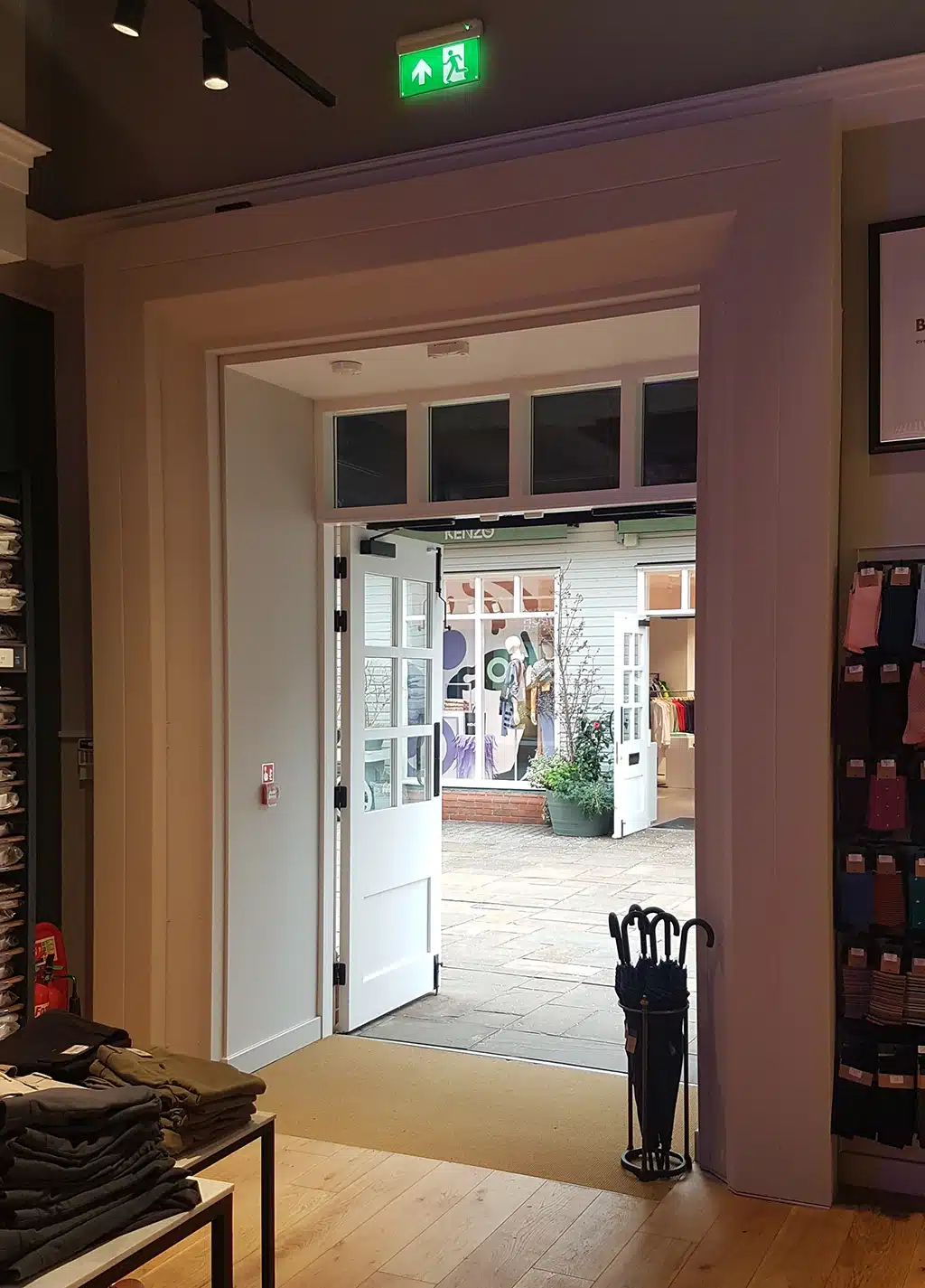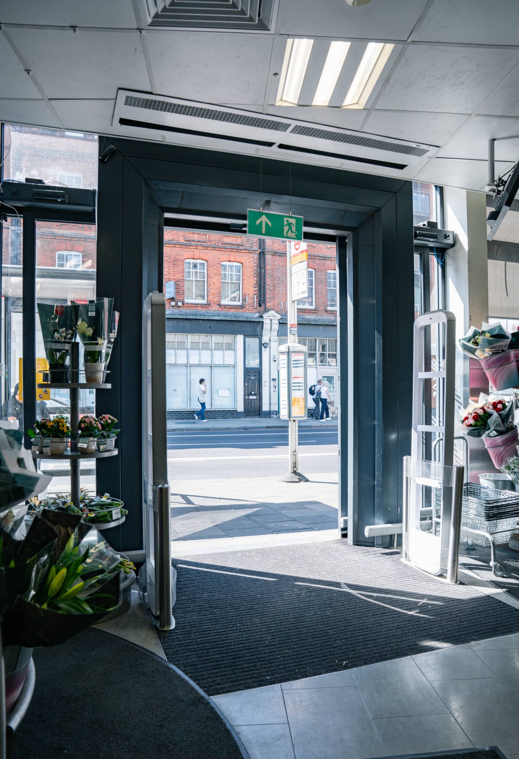 It employs a three-sided air curtain with active, targeted airflow to enhance interior comfort and boost the building’s energy efficiency. Situated directly inside the entrance, it generates a plume of air to reduce weather-related infiltration, such as wind (temperature & humidity disruption), dust, pollution and wind-driven rain (slippery floors). This enables retailers to better utilise the front-of-store area and helps food display equipment run more efficiently. While heated/cooled air curtains cost you money, AirDoor delivers a positive ROI.Suitable for any building entrance or exit, and in particular:
